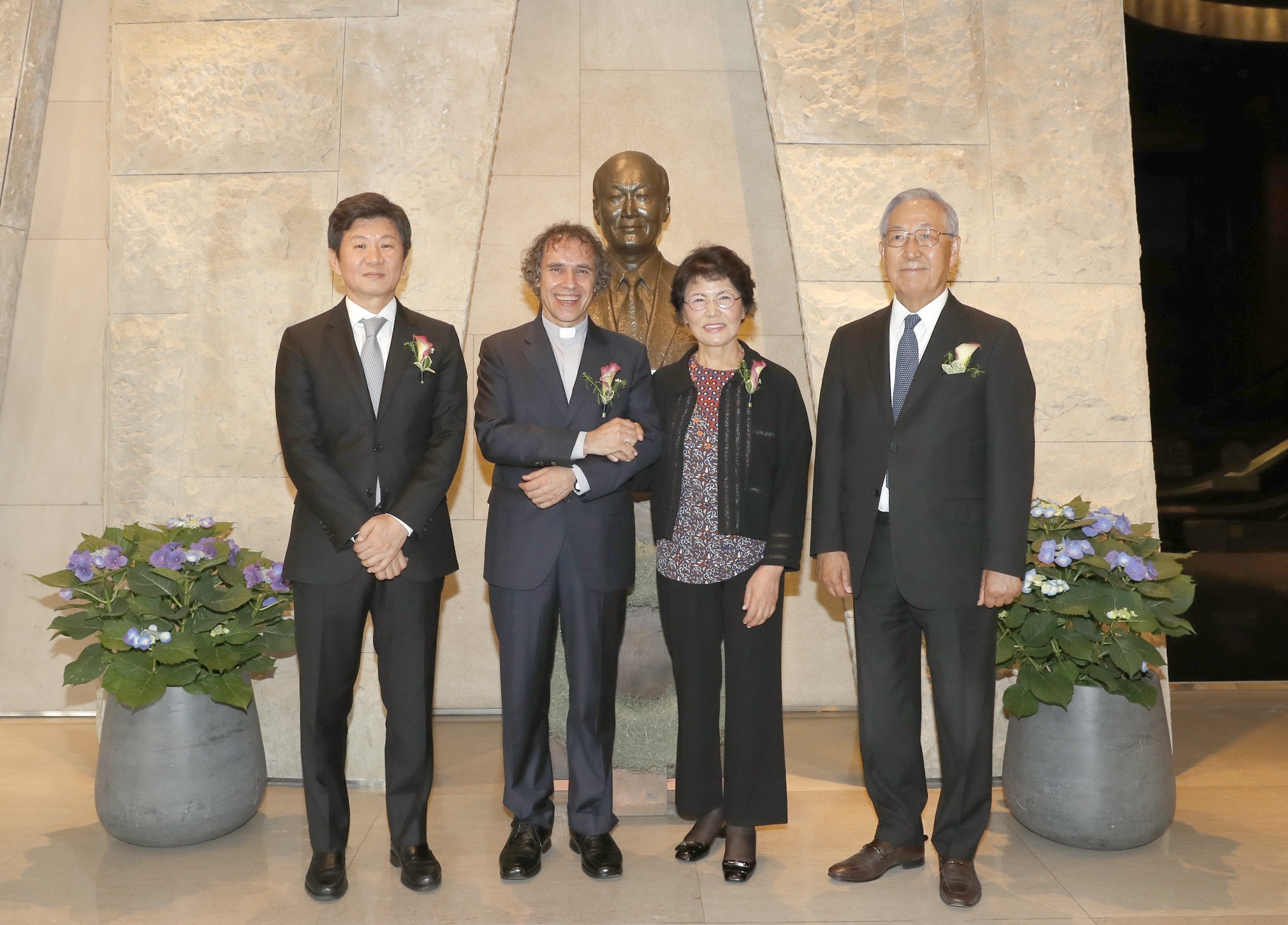A total of about 100 attendees were present, including Father Ha Jong Kim, the award winner; Chul Soo Kim, President of Pony Chung Foundation; Mong Gyu Chung, Chairman of HDC and founder of Pony Chung Foundation; and staff members of the social welfare corporation Anna House.