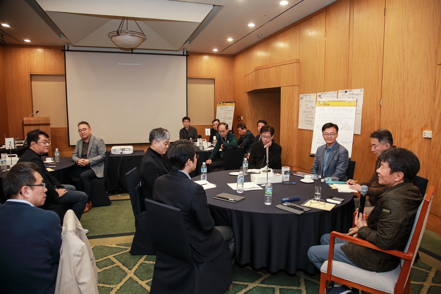 The next day, small group meetings were conducted by selecting issues worth discussion based on the business plan of the affiliates and external lectures. The CEOs of HDC Group had a hot debate on the topics of “How to create synergy through collaboration with affiliates and outside companies”, “Issues related to the group’s HR and ways to improve them”, “How to cope with the digital era”, and “Changes in business demands” that exceeded the originally scheduled 180 minutes. The CEOs of HDC Group agreed that it is urgent to reorganize the company into a “blue ocean creation business structure”, which can reduce waste elements below industry standards, remove unnecessary elements, increase relative competitive advantages, and create new values by creating differentiated competitive factors. They decided to create business synergy through more active communication and cooperation among group companies and continue to promote the “Digital Transformation” to respond to the shift in the digital paradigm more quickly.