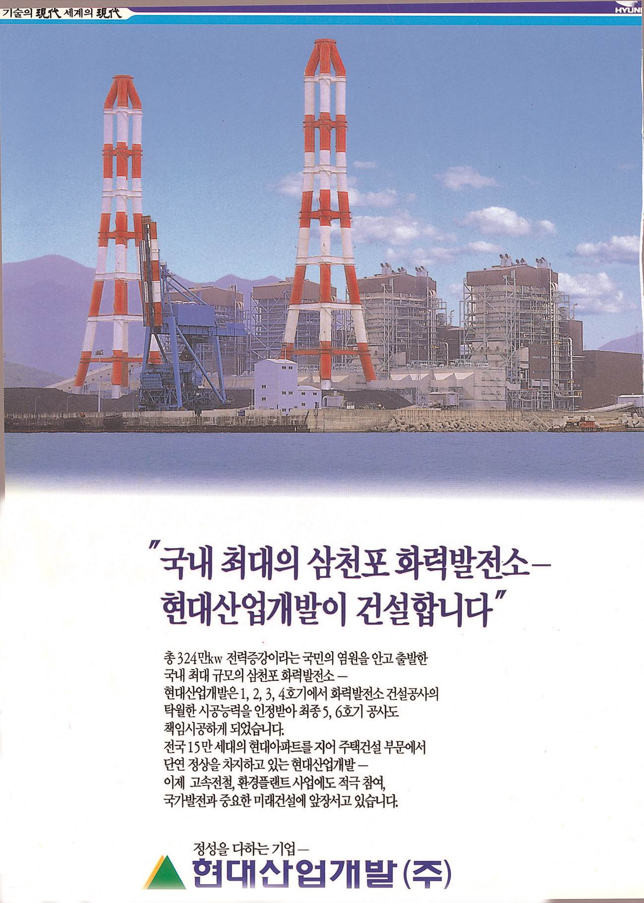 [1994 인쇄광고] 국내 최대의 삼천포 화력발전소-현대산업개발이 건설합니다