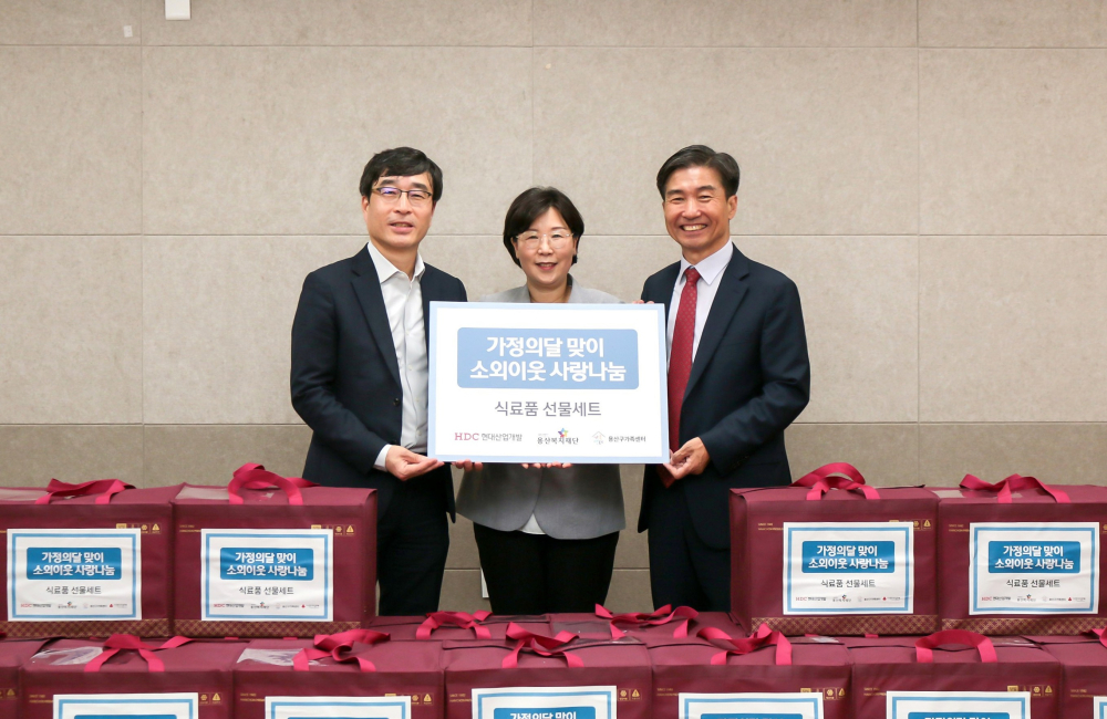 HDC현대산업개발은 20일, 가정의달을 맞아 소외이웃 사랑 나눔 캠페인으로 서울시 용산구 한남동에 있는 용산구 가족센터에 식료품 선물 세트를 전달했다.