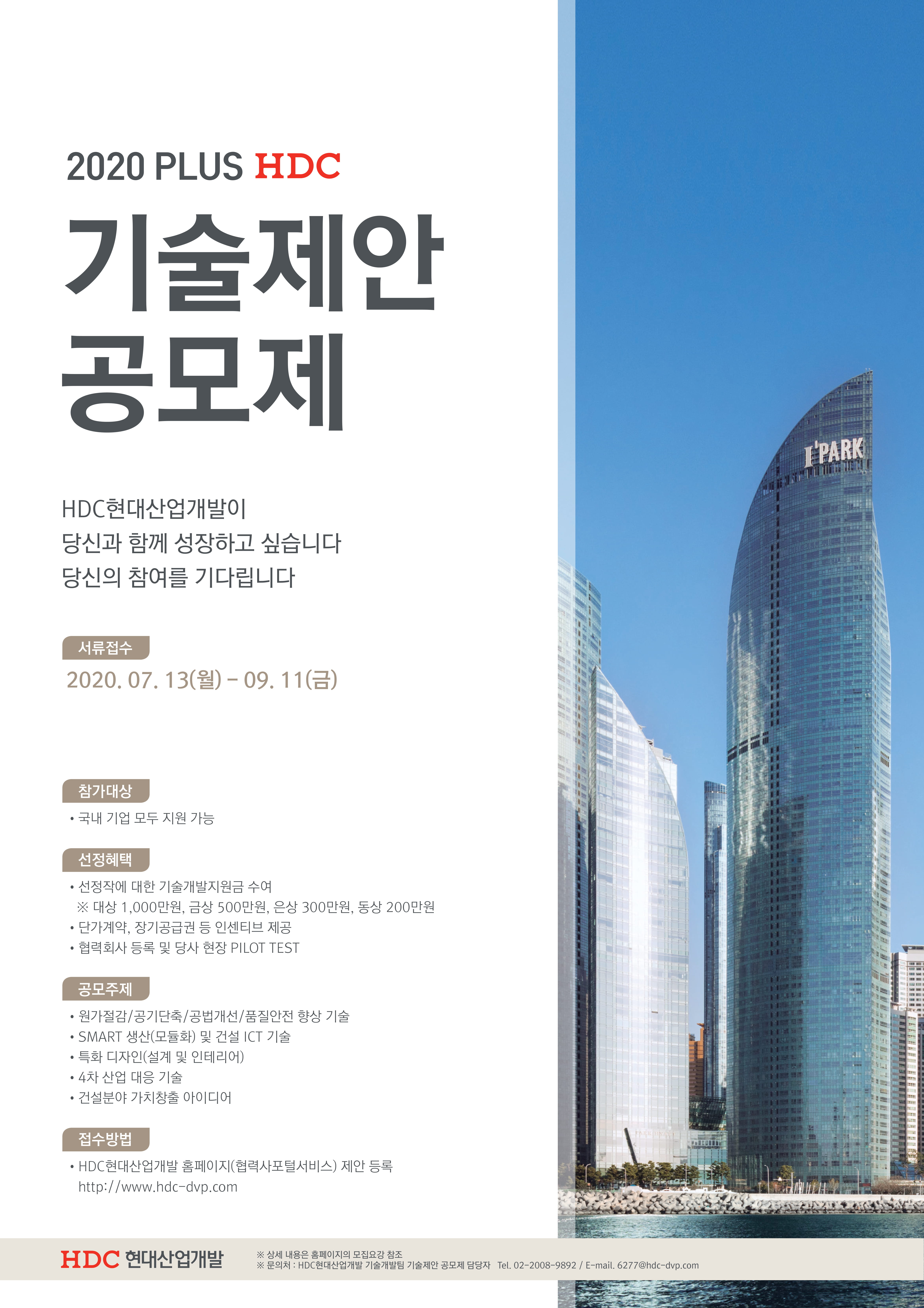 한편, 제1회 기술제안공모제와 관련한 보다 자세한 사항은 HDC현대산업개발 공식 홈페이지(www.hdc-dvp.com)의 모집 요강을 통해 확인할 수 있다.