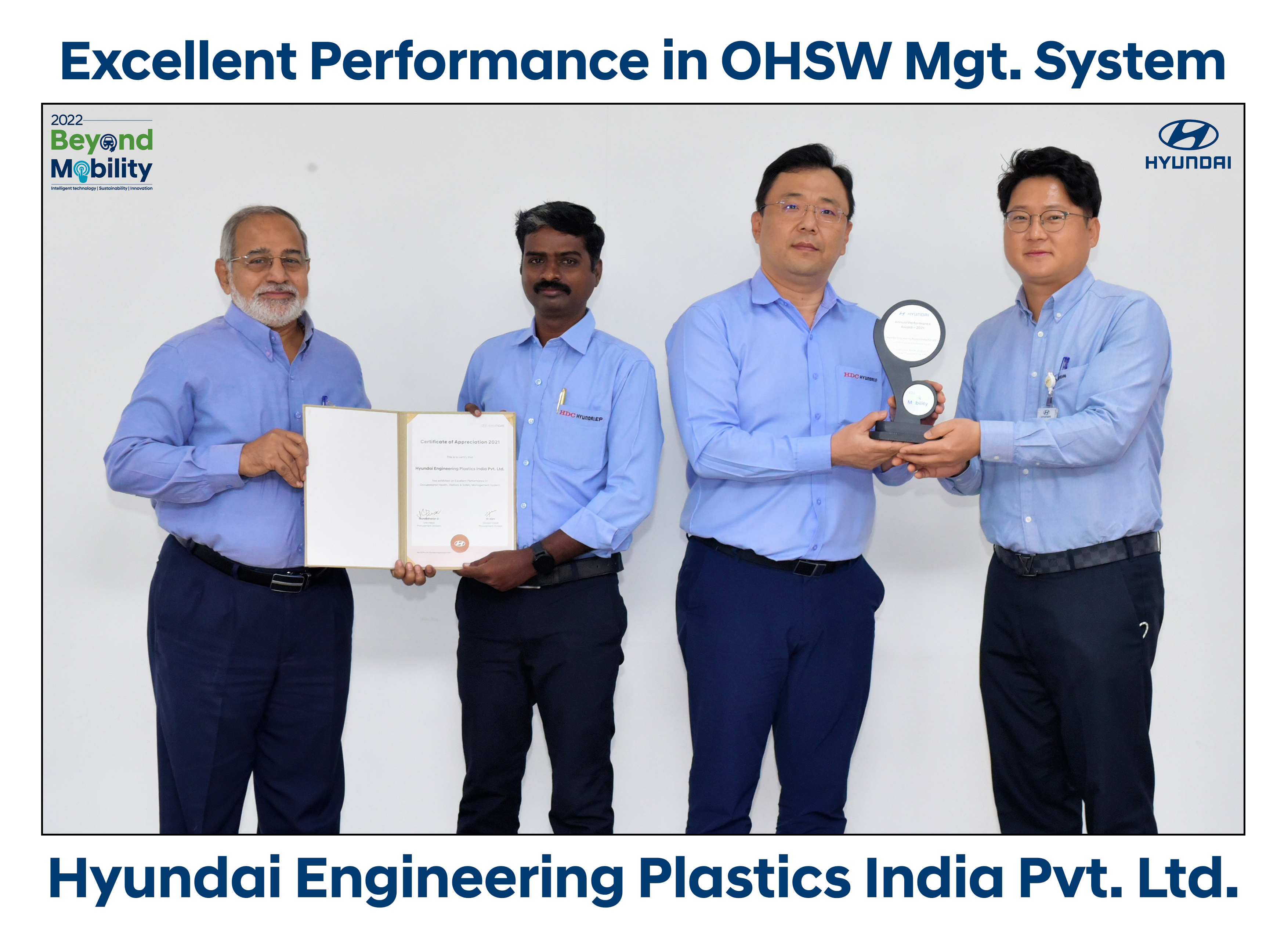 인도법인은 HMI에서 실시한 노무관리 및 안전환경 법규 준수, 안전점검, 안전사고 예방 시스템, 개선활동 등 직업보건 및 안전관리 부문에서 우수한 평가를 얻어 수상의 영예를 안았다.