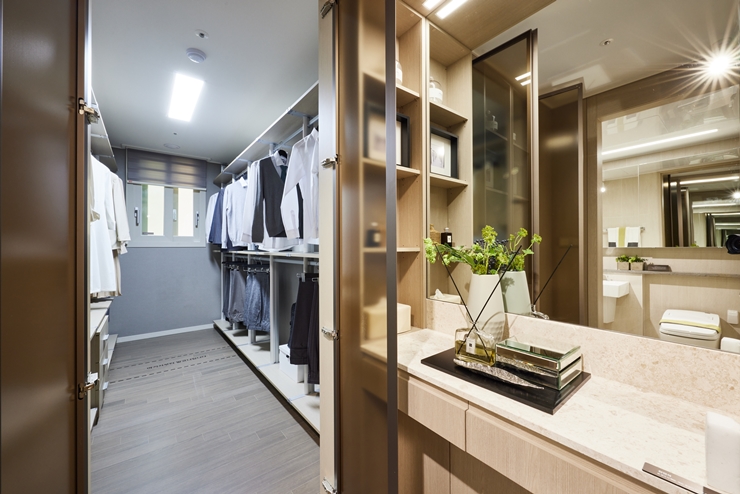 수원 아이파크 시티 10단지 아파트 84㎡의 안방에 설치된 드레스룸은 광폭의 드레스룸이 설치되어 입주민들의 생활 편의성을 돕게 된다.