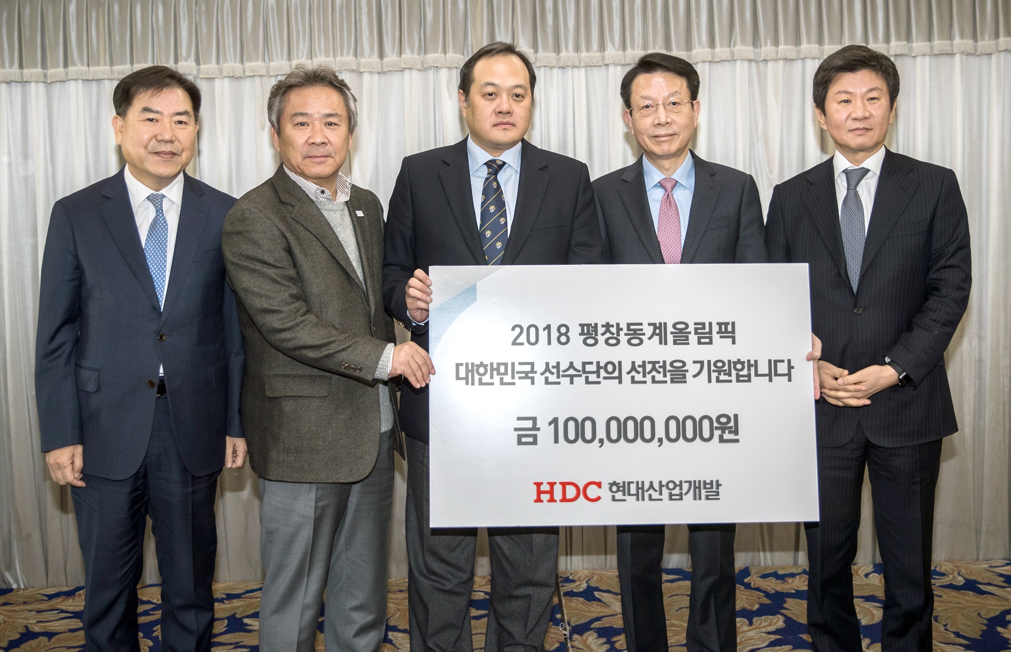 A ceremony to award the prize money was attended by 30 people including Gi Heung Lee of the Korea Sport & Olympic Committee; Jae Geun Lee, Olympic Village Headman; Chung Ryeol Chun, Secretary-General; Ji Yong Kim, Head Delegate of the PyeongChang 2018 Olympic Winter Games; Mong Gyu Chung, Chairman of HDC; Dae Chul Kim, CEO of HDC; and Geun Yang Yuk, Head of the Management Planning Division. This ceremony was meant to wish the Korean athletes a good fight and success at the PyeongChang 2018 Olympic Winter Games.