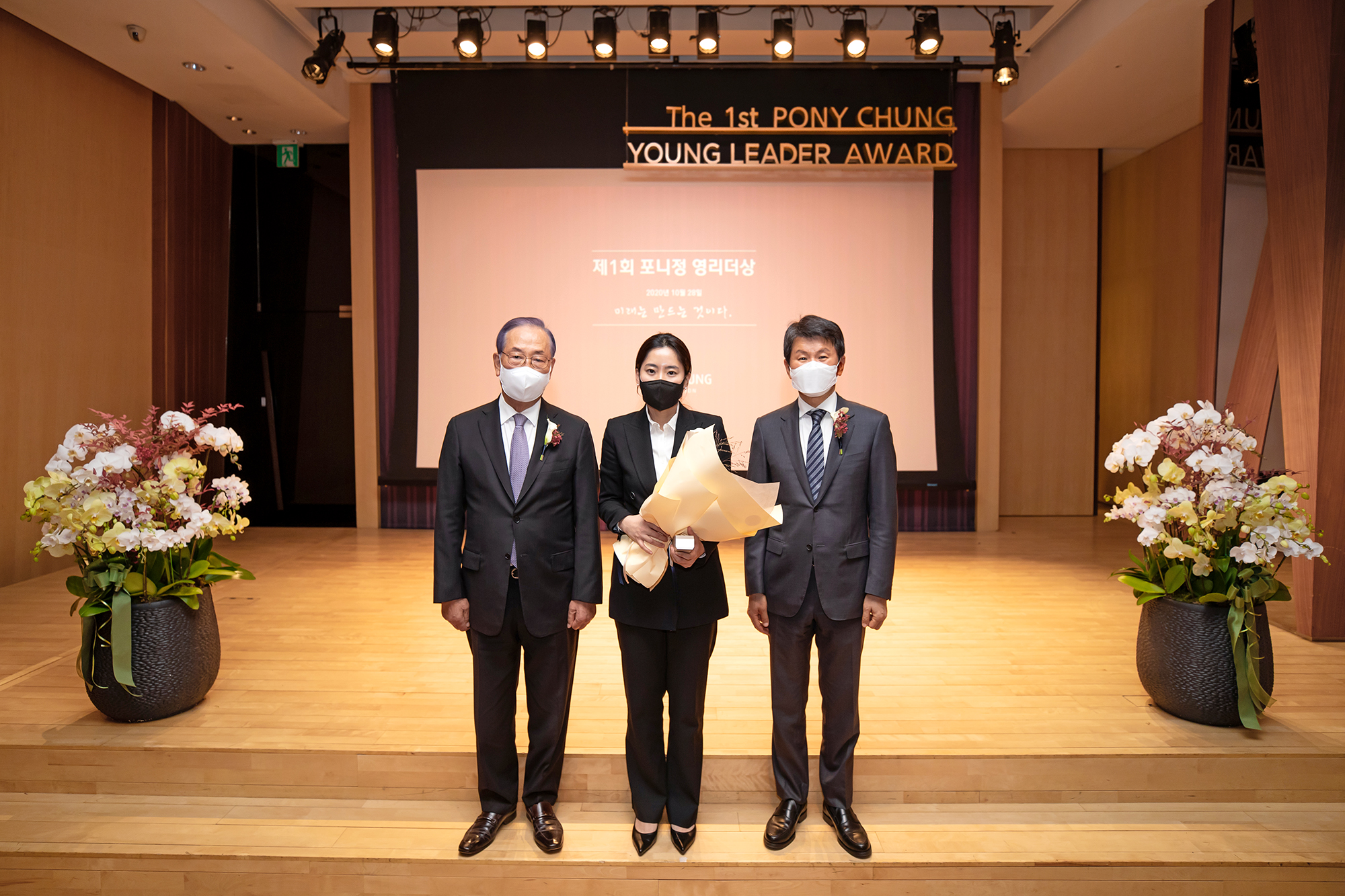 At this ceremony, Chairman Kim Chul-Su, the Founder of the Pony Chung Foundation, announced the reason behind the selection in his congratulatory remarks as he said, “The Pony Chung Young Leader Award is the second Pony Chung Innovation Award in that it encourages young leaders who will open up a new future for our generation. Its first awardee CEO Kim Seul-A was the forerunner in the domestic industry to adopt the “7-day next morning delivery” system, additionally to stress eco-friendly and win-win management, and is inspiring today’s youth by pioneering trends in the delivery distribution market.” Abiding by COVID-19 social distancing guidelines, the award ceremony was held with only a minimum number of attendees including the winner CEO Kim Seul-A, Pony Chung Foundation Chairman Kim Chul-Su, HDC Group Chairman Chung Mong-Gyu, and the foundation’s board directors.