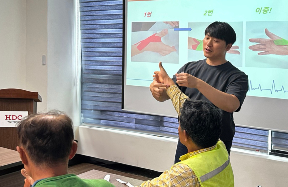 테이핑 교육은 작업 중 발생 가능한 질환을 예측해 이론교육과 테이핑 요법 실습으로 근로자들이 직접 자가방법을 숙지해 통증 완화와 선제적 예방을 목적으로 한다. HDC현대산업개발은 올해 상반기 38개 현장, 106회에 걸쳐 약 5,000여 명의 근로자를 대상으로 테이핑 교육을 진행했다. 이를 바탕으로 하반기에는 전 현장, 모든 근로자를 대상으로 확대 시행할 계획이다.