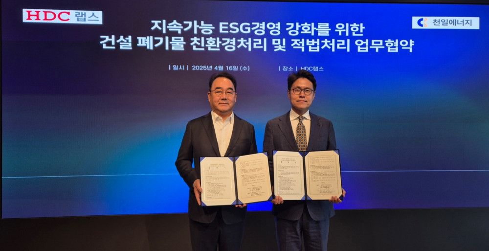 HDC그룹의 공간 AloT 플랫폼 기업인 HDC랩스가 천일에너지의 관계사 '지구하다'와 폐기물 처리 협약을 체결했다고 17일 밝혔다.