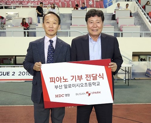 부산아이파크축구단이 HDC영창과 함께 부산지역 초등학교에 최고급 사양의 디지털피아노 1대를 기부했다.