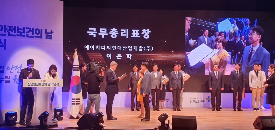 우선 7월 1일 고용노동부와 한국산업안전보건공단이 개최한 <제52회 산업안전보건의 날> 기념행사에서 HDC현대산업개발 이은학 차장이 산재예방유공자로 선정되어 국무총리 표창을 받았다. 본사 HSE팀에서 예방진단과 재해관리 업무를 총괄하는 이은학 차장은 건설현장의 재해예방을 위해 안전점검과 교육을 수시로 실시하는 한편, 안전시설물과 시스템을 개선하고 적용시키는 등 안전활동의 실효성을 높이는데 노력해왔다. 이 차장은 "선제적 위험관리를 통한 재해예방과 함께 협력회사의 자주적 안전관리를 위한 시스템을 구축하고, 창의적 안전관리 시스템을 위한 실행력 향상과 실효성 증대에 주력하는 한편 최근 증가하는 외국인 근로자 관리에도 만전을 기해 재해발생 감소에 기여하겠다"라며 소감을 전했다.