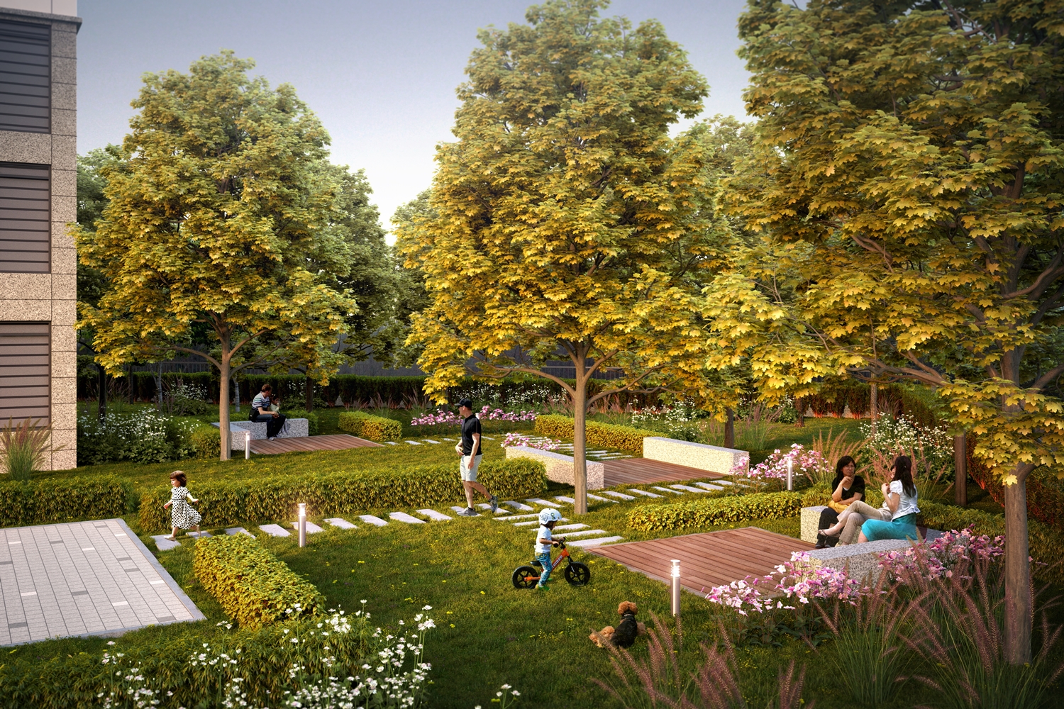 - 단지 내 단풍가든, 오감가든 등 조경 공간 조성, 탁 트인 전망까지 누리는 자연친화 단지