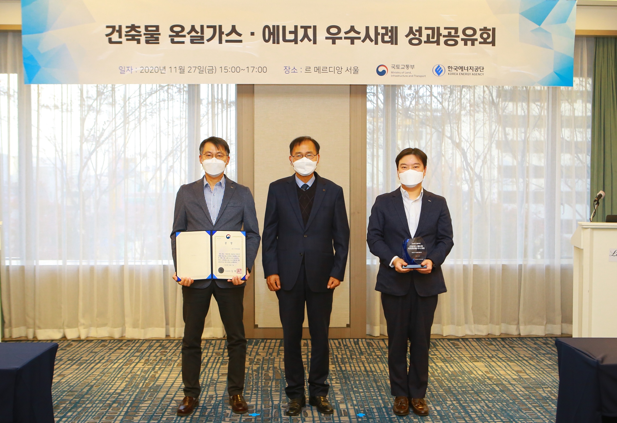 HDC그룹 내 유통 전문 기업인 HDC아이파크몰이 지난 27일, 르 메르디앙 서울 호텔에서 열린 ‘2020 건축물 온실가스∙에너지 우수사례 성과공유회’ 에서 ‘건물부문 온실가스∙에너지 목표관리제 최우수기업’으로 선정돼 ‘국토교통부 장관 표창’을 수상 했다고 29일 밝혔다.