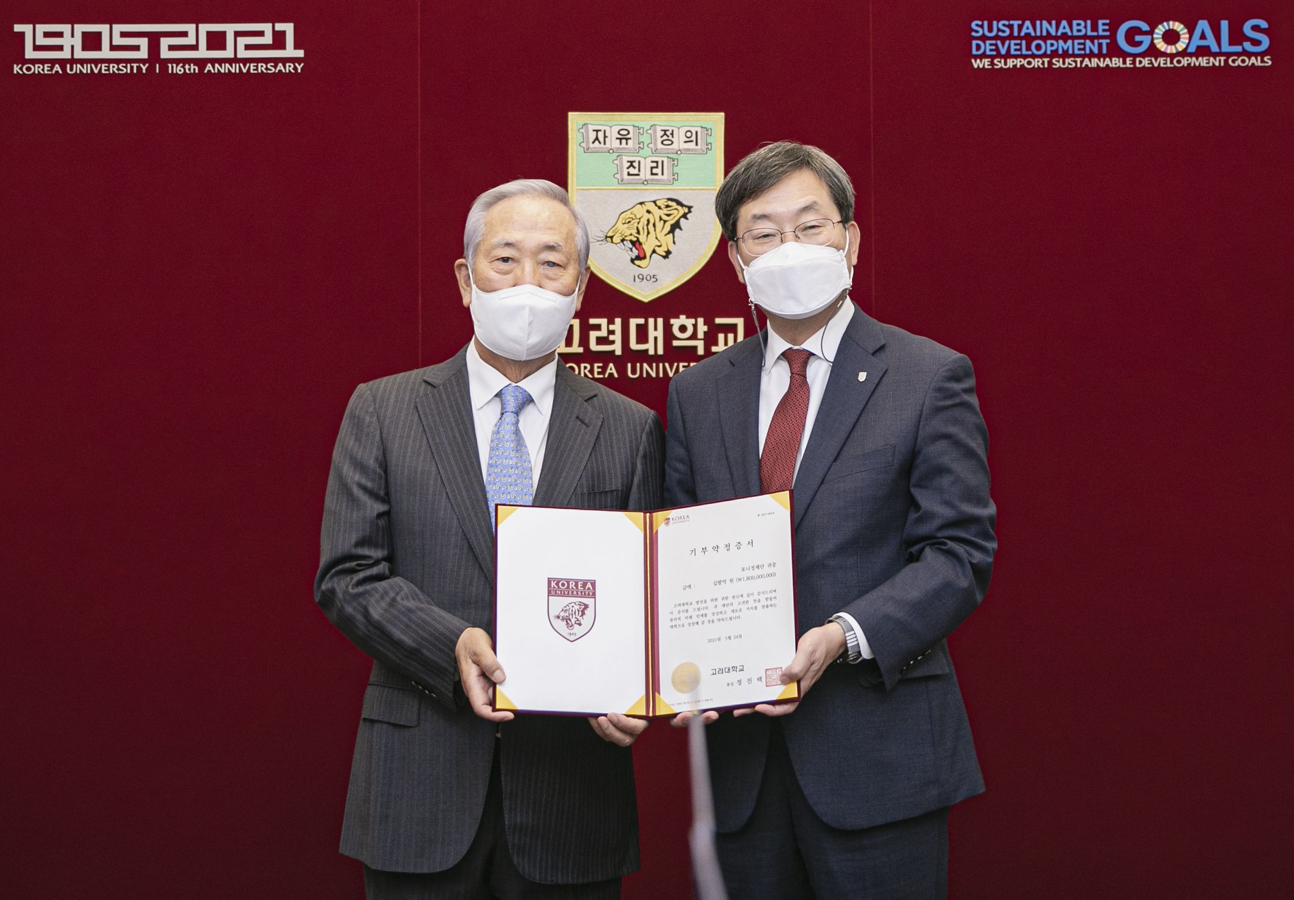 포니정재단(이사장 김철수)은 24일 고려대학교 본관 총장실에서 ‘한국학 장학·연구기금 기부 협약식’을 개최했다. 협약식에는 포니정재단 김철수 이사장, 고려대학교 정진택 총장, 송혁기 대외협력처장, 김형찬 민족문화연구원장이 참석했다.