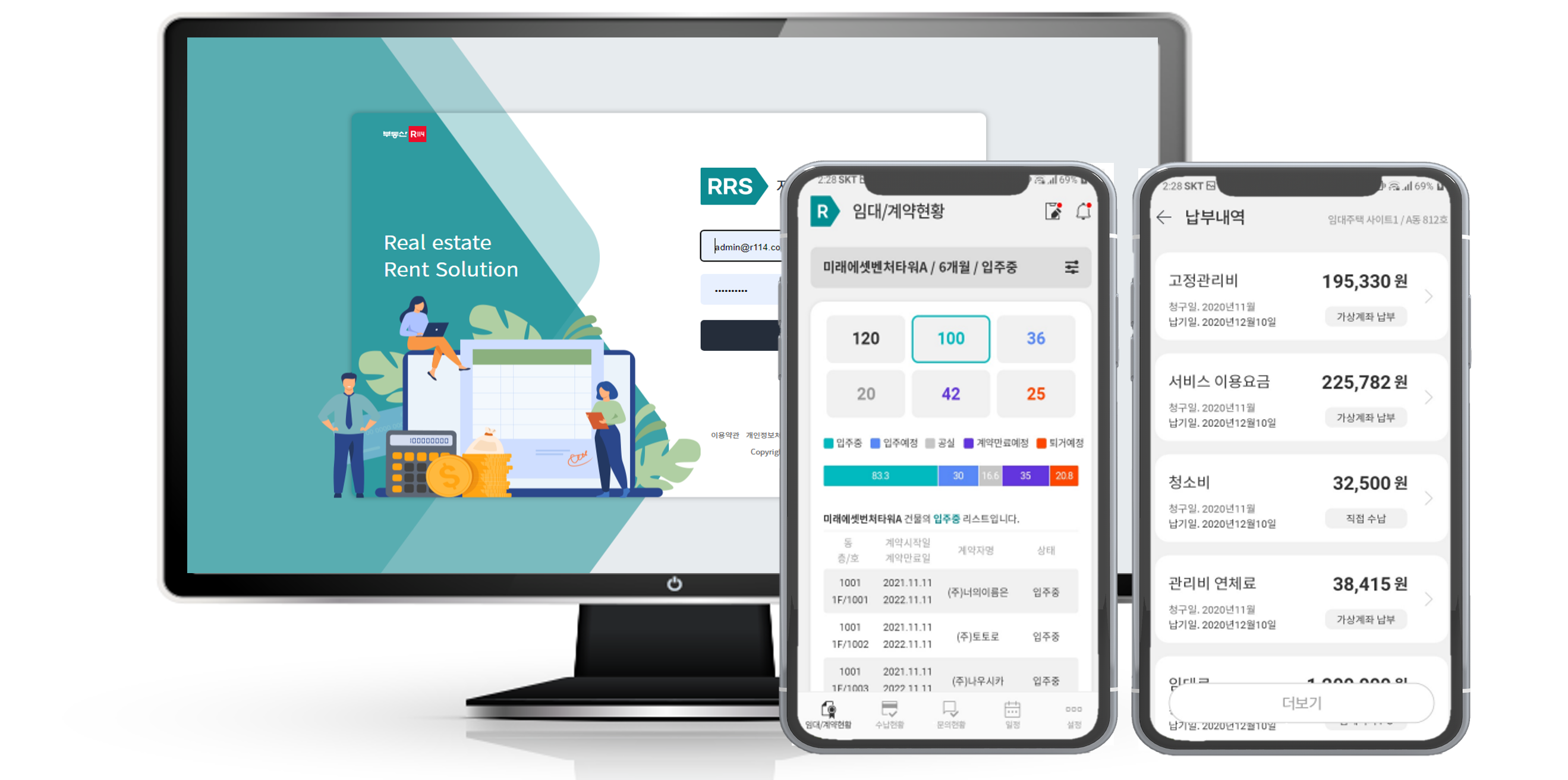 부동산 자산관리 솔루션인 ‘RRS'는 임대차 계약 내역 및 임대료 청구 정보, 수납 현황은 물론 부동산 전자계약서비스 등 기존 번거로웠던 임대관리 업무를 통합하여 체계적으로 관리할 수 있는 솔루션으로 임대관리 업무의 효율성을 극대화한 것이 특징이다.