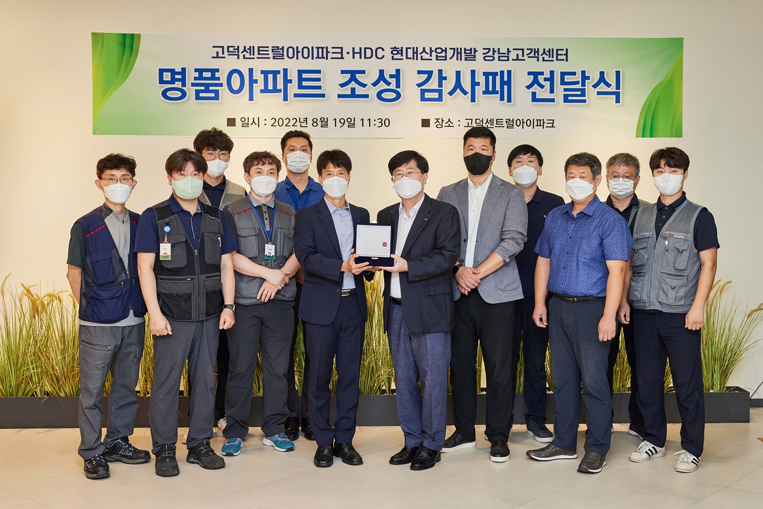 HDC현대산업개발은 서울 고덕 센트럴 아이파크 입주자대표회의(회장 최연식)로부터 신속한 업무 처리를 통해 명품아파트 조성에 이바지한 공로로 감사패를 전달받았다.