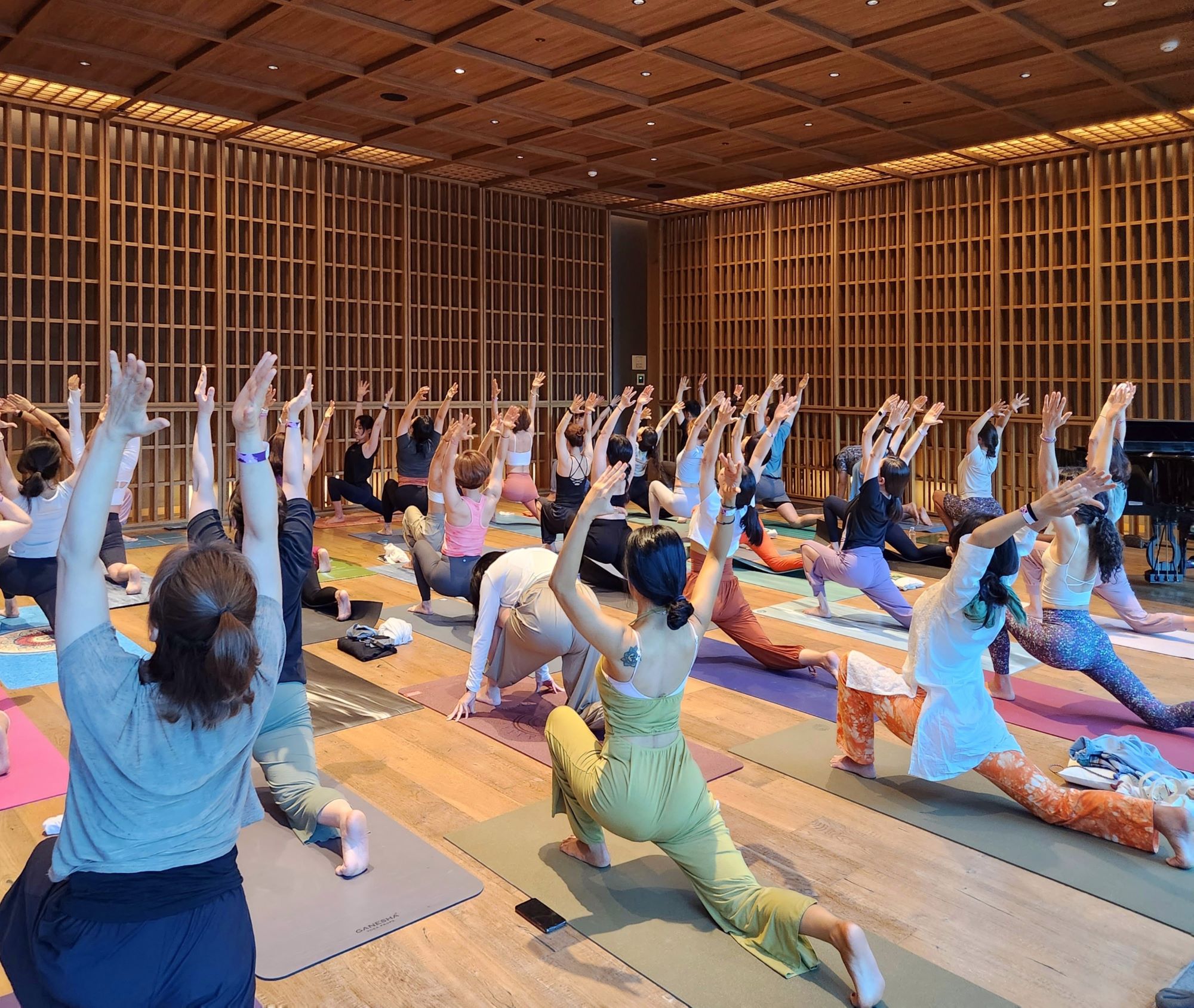 빌리지 수영장 등의 주요 스폿에서 진행된 웰니스 프로그램들은 실생활에서 바로 응용할 수 있도록 의자를 이용해 척추 균형을 바로잡는 밸런스 체어