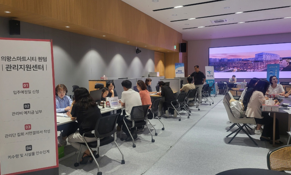 <사진1> HDC현대산업개발은 계약자들의 원활한 입주 진행을 위해 현장에서 입주 지원센터를 운영하며 입주 상담 및 AS 접수를 진행하고 있다